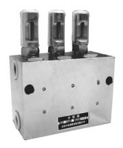 該型分配器適用于公稱壓力為40MPa的雙線式干油集中潤滑系統(tǒng)中,在兩條供油主管交替的供油壓力作用下,直接由供油壓力控制活塞動作給油,完成向潤滑點(diǎn)定量分配潤滑脂的功能。