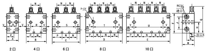 4、在分配器上下對(duì)應(yīng)出油口間設(shè)有合二為一的出油結(jié)構(gòu),易改奇數(shù)出油,使用時(shí)只需將孔內(nèi)的螺釘擰出,把上或下不用的那個(gè)出口用R1/4 螺塞封堵即可。