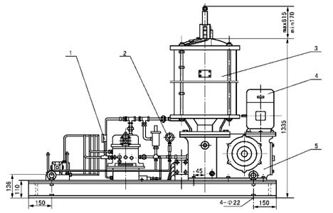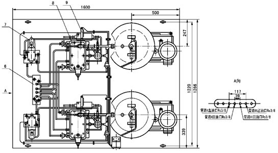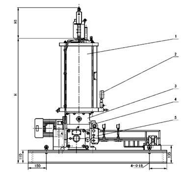 1 - 壓力表;2 - 壓力表;3 - 貯油器;4 - 電動(dòng)機(jī);5 - 電動(dòng)潤(rùn)滑脂泵