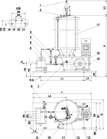 2、使用前先向柱塞泵的減速腔內(nèi)加入N220的工業(yè)齒輪油至油標規(guī)定液面。