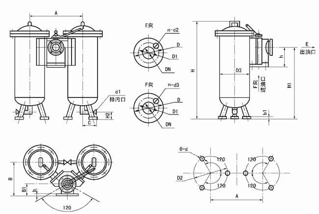 1、過濾器分別由兩組過濾裝置和一個(gè)六通換向閥組成,正常工作時(shí),一組過濾裝置投入運(yùn)行,另一組被換向閥封閉備用。
