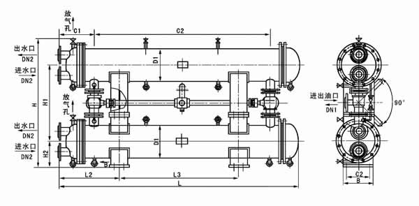 2、冷卻器安裝通常為臥式,如用戶需要時可采用二種立式布置,一種進水室在下、另一種進水室在上,便于管束拆卸。