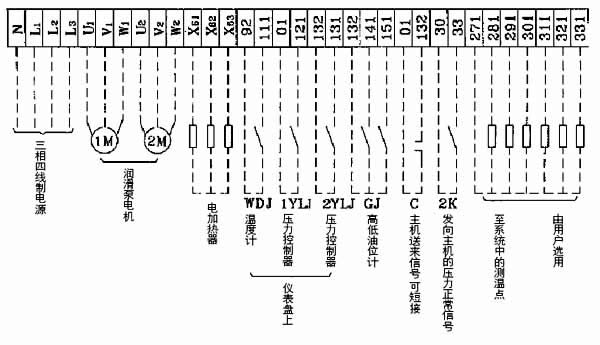 | 1、XYZ-6G~125G 稀油站電控箱外接端子接線圖 |