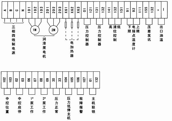 | 2、XYZ-250G~1000G 稀油站電控箱外接端子接線圖 |