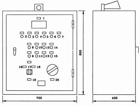 圖1-1-8 XYZ-250G~XYZ-1000G 稀油站電控柜外形圖 |