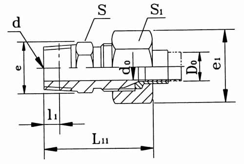 管子外徑D0為10mm的A型擴(kuò)口式錐螺紋直通管接頭: